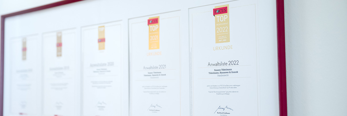 Seit 2018 werde ich jährlich als Expertin unter 1000 Fachanwälten von dem Magazin Focus in der Focus-Anwaltsliste für Familienrecht geführt und zähle damit zu den 100 ausgezeichneten Scheidungsanwältinnen und Scheidungsanwälten Deutschlands. Die Auszeichnung freut mich besonders, weil sie auf einer Kollegenbefragung basiert und zeigt, dass ein kompetenter, aber fairer Umgang mit der Gegenseite eine gute Anwältin im Familienrecht ausmacht und dies Anerkennung erfährt.